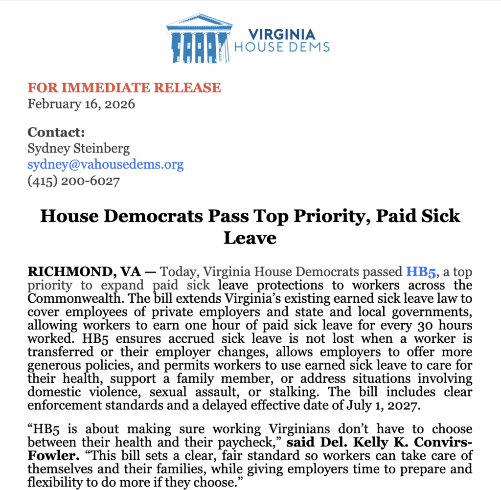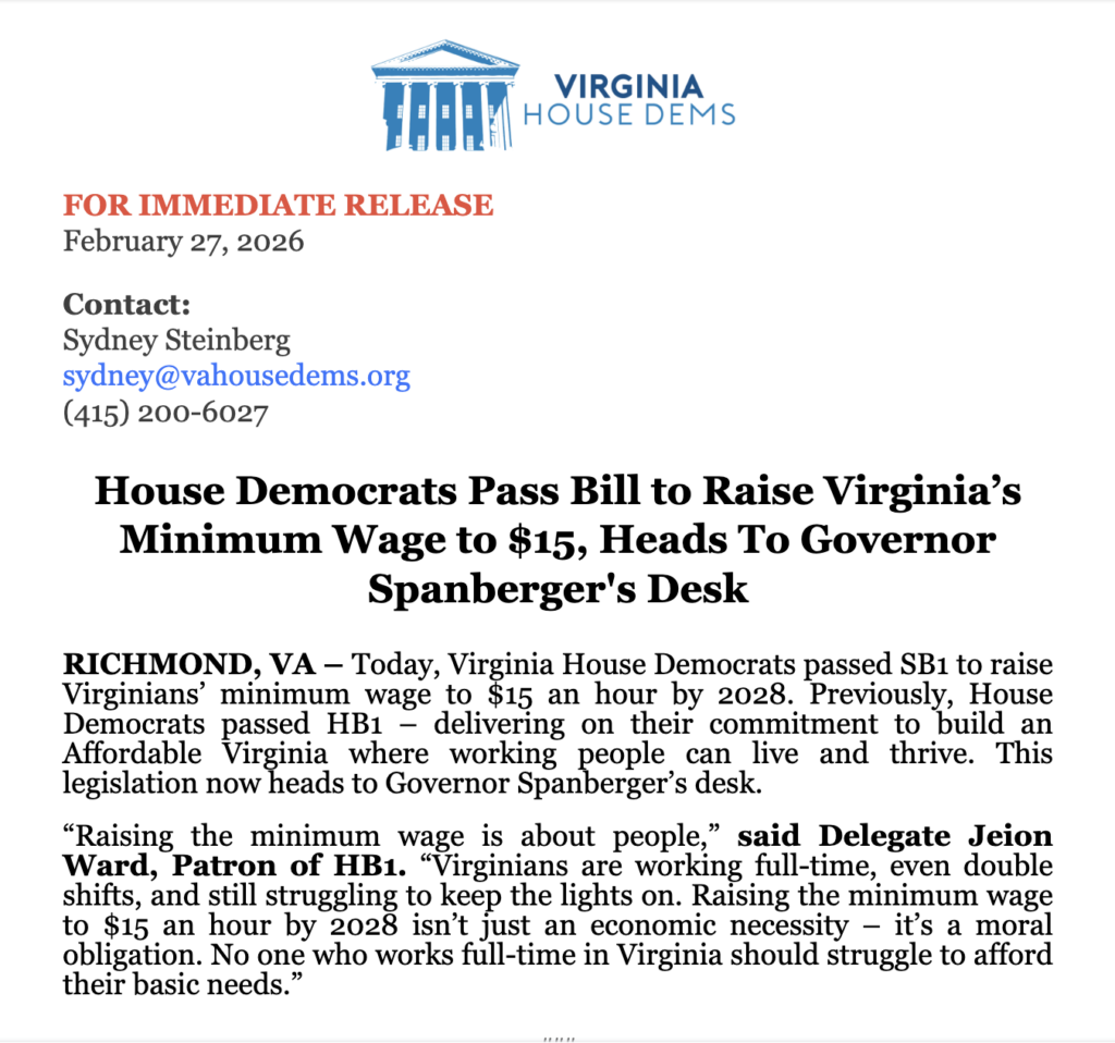 As the 2026 Legislative Session enters its final week, I am still hard at work finalizing decisions on the bills that will shape Virginia’s policies and priorities for the year ahead. With committees wrapping up, legislation ending its journey, and final votes occurring, this is a critical time for key