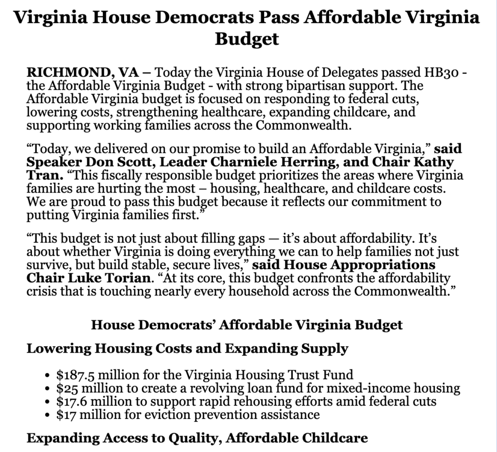 Budget realities and a reluctance to raise taxes have narrowed the field.Virginians have a clearer answer on how Democrats elected last fall plan to answer the affordability crisis, after lawmakers’ legislative agenda narrowed due to budget realities and a reticence to raise taxes. General Assembly Democrats came into the 2026
